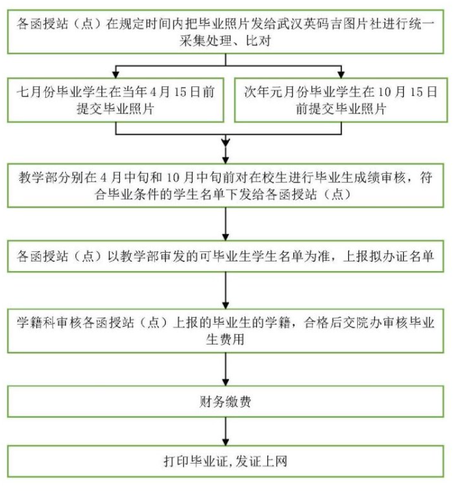 1、各函授站(点)尽早与武汉英码吉图片社联系,及时按照要求把毕业照片发给武汉英码吉图片社进行统一采集处理,武汉英码吉对毕业照片进行对比,并及时反馈给各函授站(点)比对结果,对比对不通过的照片,各函授站(点)及时更换毕业照片再进行比对,到2022年4月15日截止。如果还不能通过,本次暂不能毕业办证。对没有通过的学生,需要学生书面提出复议申请,到当年成人高考报名点打印出考生信息核查表,提供高考报名前后的各类证件照片,由函授站(点)进行初审,并出具初审报告。由函授站(点)带领学生本人,带着相关资料于4月30日前到我院学籍科进行现场审核,审核通过的,我校向省教育厅上报相关资料申请复审,复审通过后,才能申请毕业。身份信息核查出现弄虚作假、冒名顶替等情况、或超过规定弹性学习期限的将作退学处理。