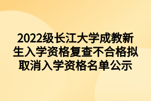 长江大学成教新生入学资格复查不合格拟取消入学资格名单公示已经公布了,长江新生在注册学籍之前会有一次入学资格审核,审核通过的同学会在学信网上注册学籍,审核不通过的同学,会被取消入学资格。