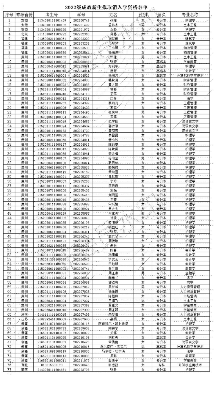 根据《高等学校学生管理规定》(教育部令41号)、《2021年全国成人高校招生办法》、《湖北省成人高校新生入学资格复查办法》相关规定,长江大学2022级部分成教新生录取信息、身份证信息、报到现场采集信息三者比对不一致,入学资格复查不合格,学院拟对上述人员(名单附后)作取消入学资格处理,现予公示,公示期为五个工作日。