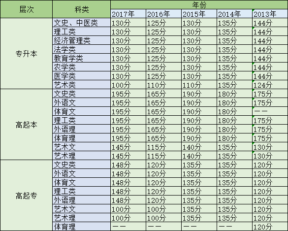 湖北省历年成人高等学校招生录取控制分数线,具体情况如下: