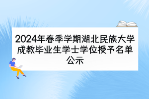 湖北民族大学成教本科毕业生学士学位授予资格审核工作已圆满完成。小编为大家整理了2024年春季学期湖北民族大学成教毕业生学士学位授予名单,现将符合学士学位授予条件的毕业生名单内容详情公布如下: