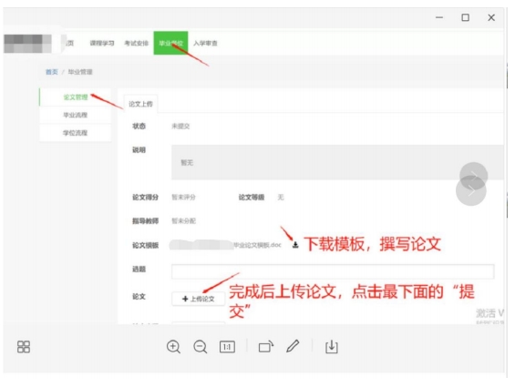 2.电脑端登录后点击“毕业学位”,按照以下流程完成操作即可。