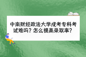 中南财经政法大学成考专科考试难吗?我们又该如何提高录取率呢?接下来,本文将为您深入解析这些问题。