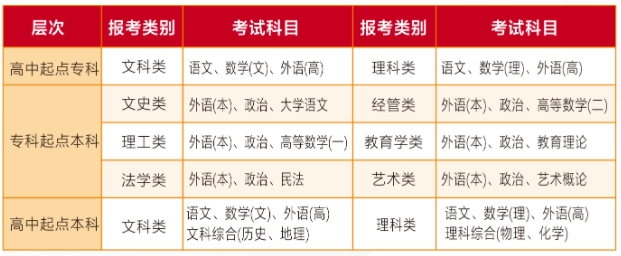 成人高考统考科目