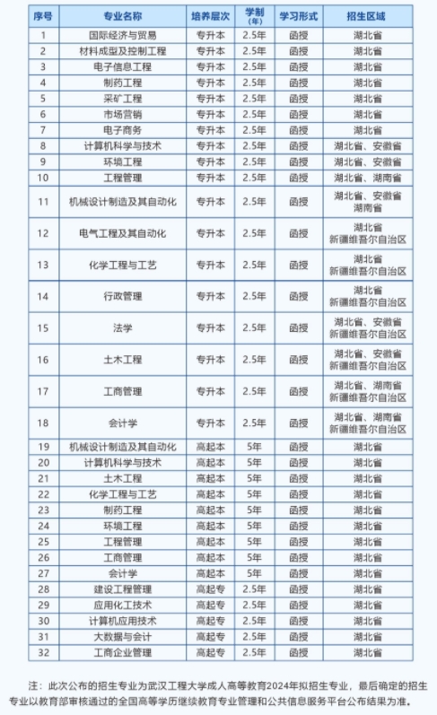 武汉工程大学成人高考招生简章发布啦,为方便大家报考,小编为大家整理了2024年