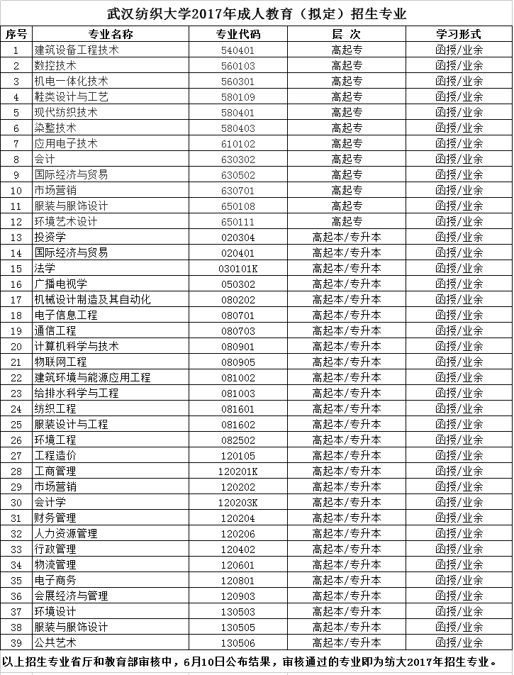 二、武汉纺织大学成教招生专业及费用